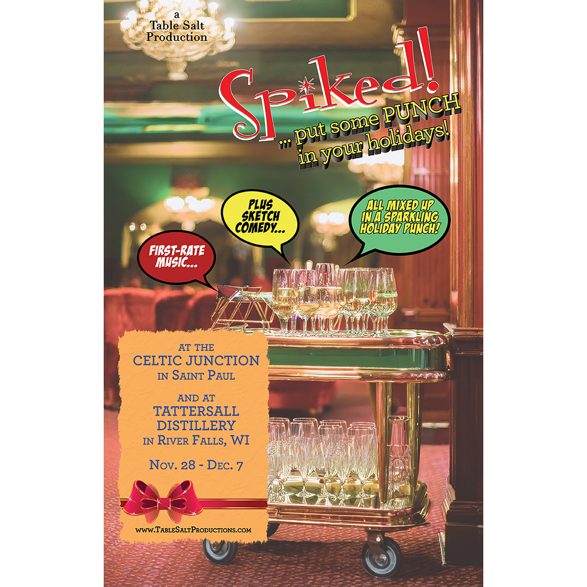 What is Spiked? First-rate music plus sketch comedy, all mixed up in a sparkling holiday punch! Featuring local music headliners and Brave New Workshop alums, it’s Saturday Night Live meets Mariah Carey … with cocktails!